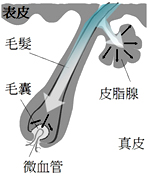 應用獨特配方有效地將藥物(如治療猝發的藥物和治療痤瘡的抗菌藥物)沿毛囊導管逆行靶向送至皮脂腺及毛囊部位